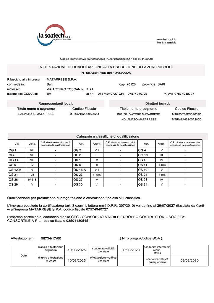 Attestazione di qualificazione all’esecuzione di lavori pubblici