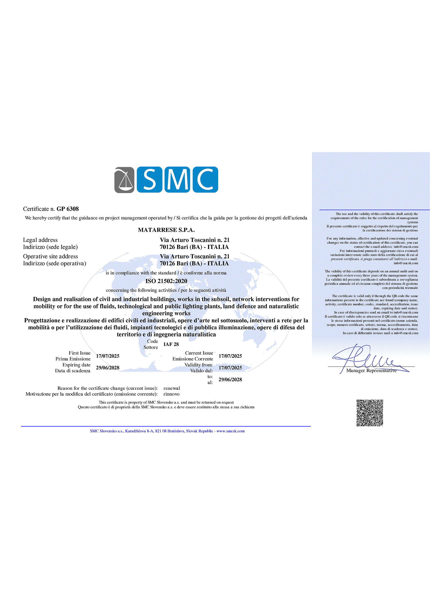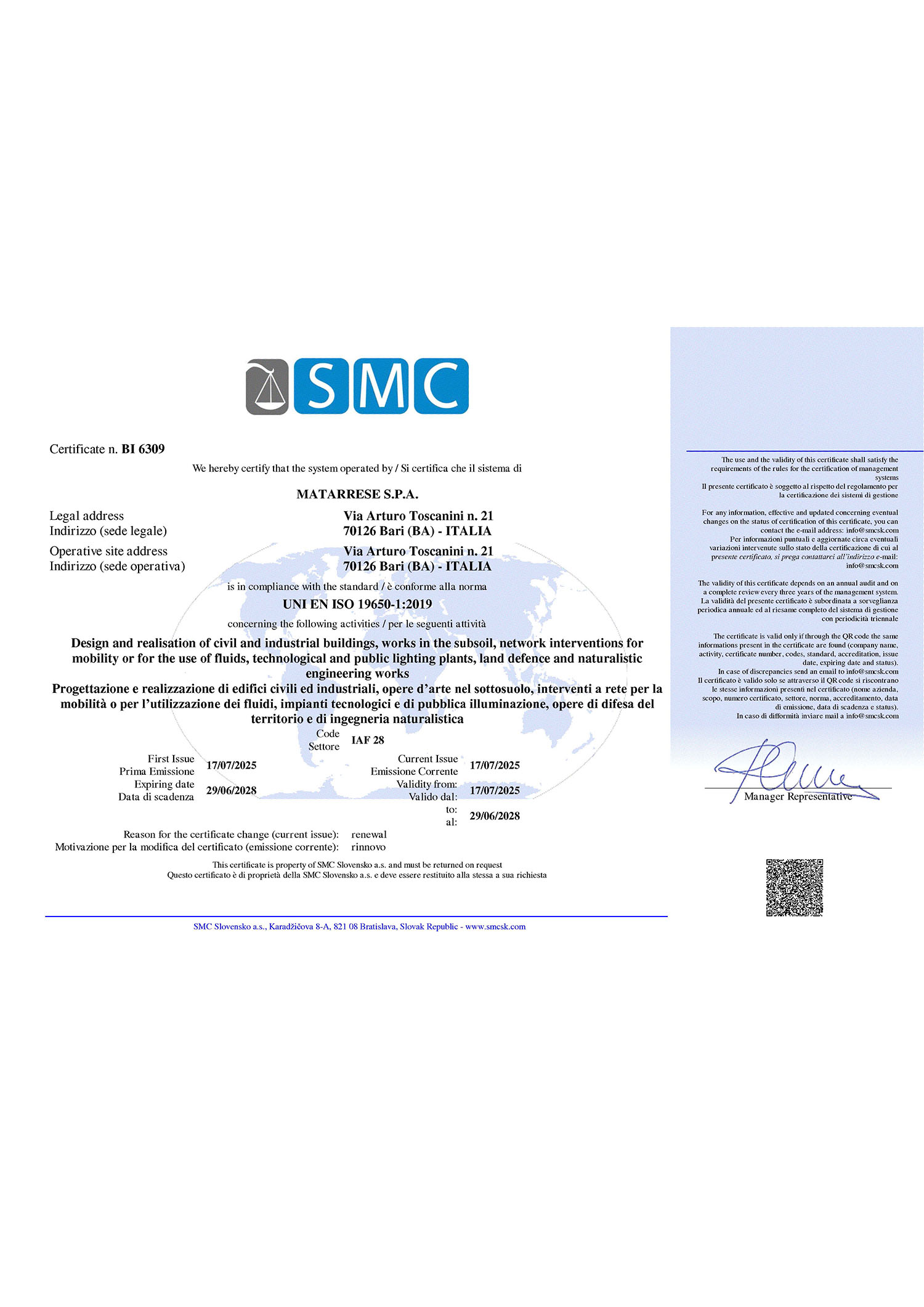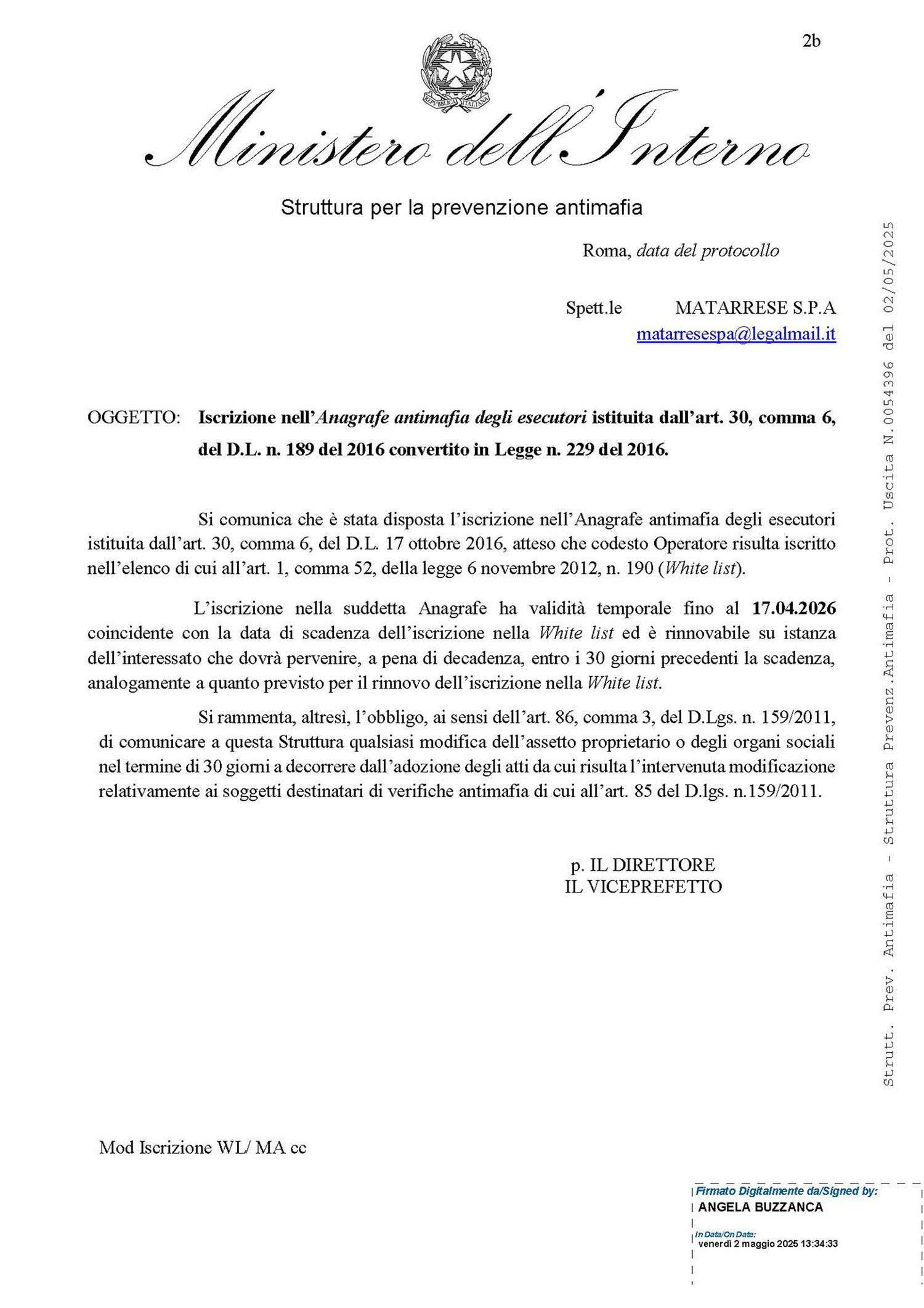 Impresa iscritta all’anagrafe antimafia Sisma presso Ministero dell’Interno