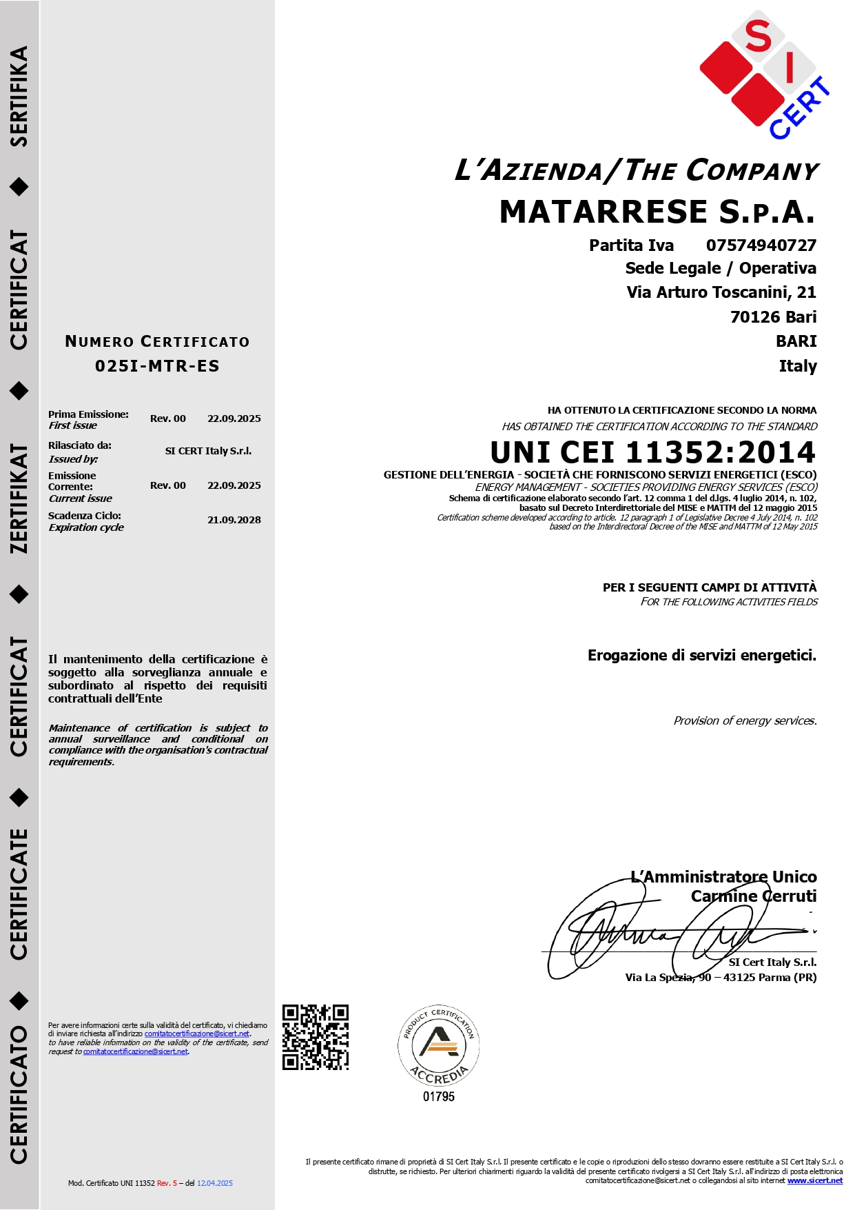 Certificazione del Sistema di Gestione dell’Energia