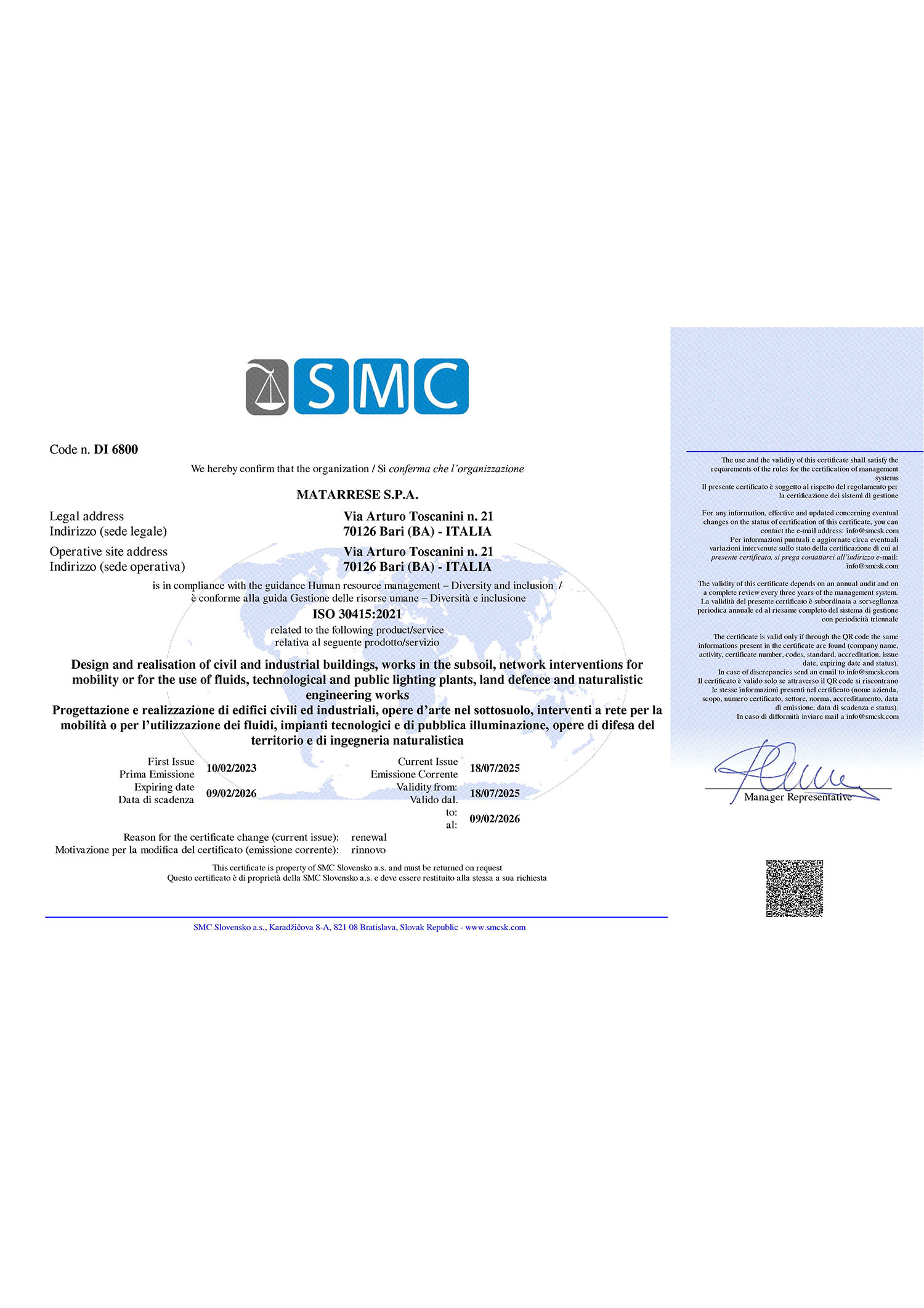 Certificazione del sistema di Gestione delle Risorse Umane – Diversità e Inclusione