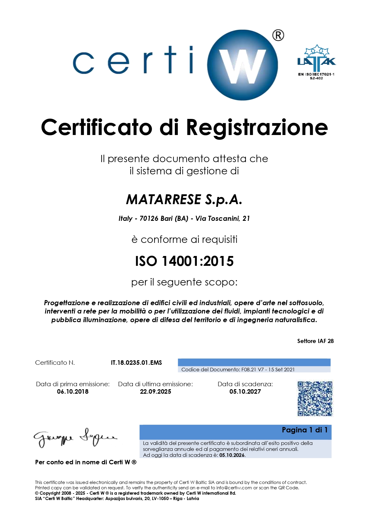 Certificazione del Sistema di Gestione Ambientale