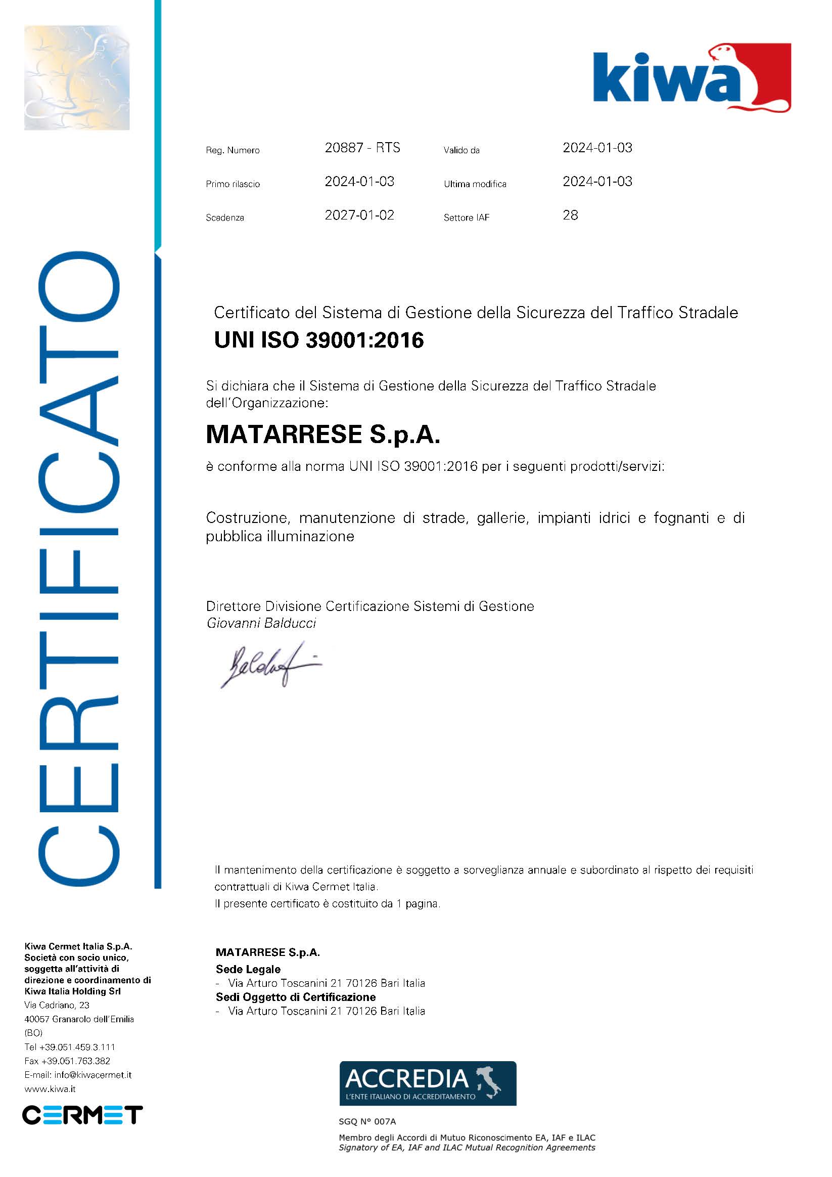 Certificazione del Sistema di Gestione per la Sicurezza Stradale