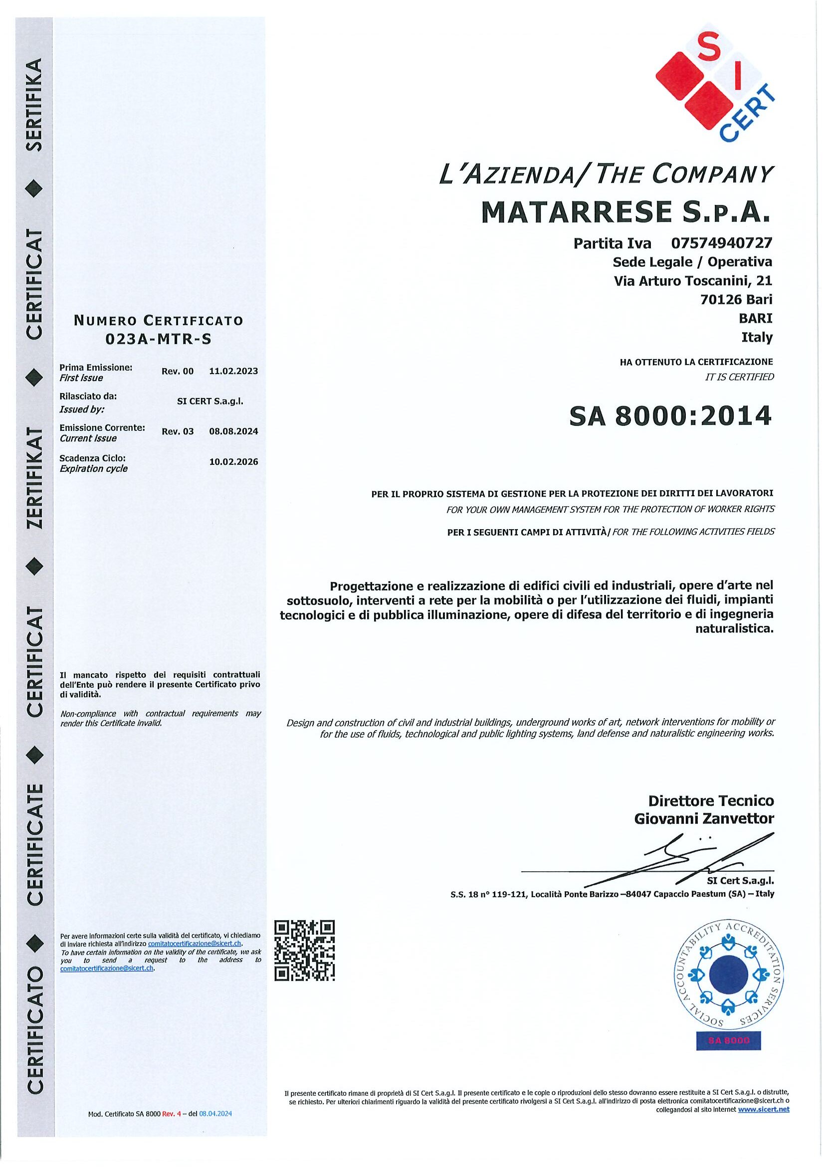 Certificazione del Sistema di Gestione per la Protezione dei Diritti dei Lavoratori
