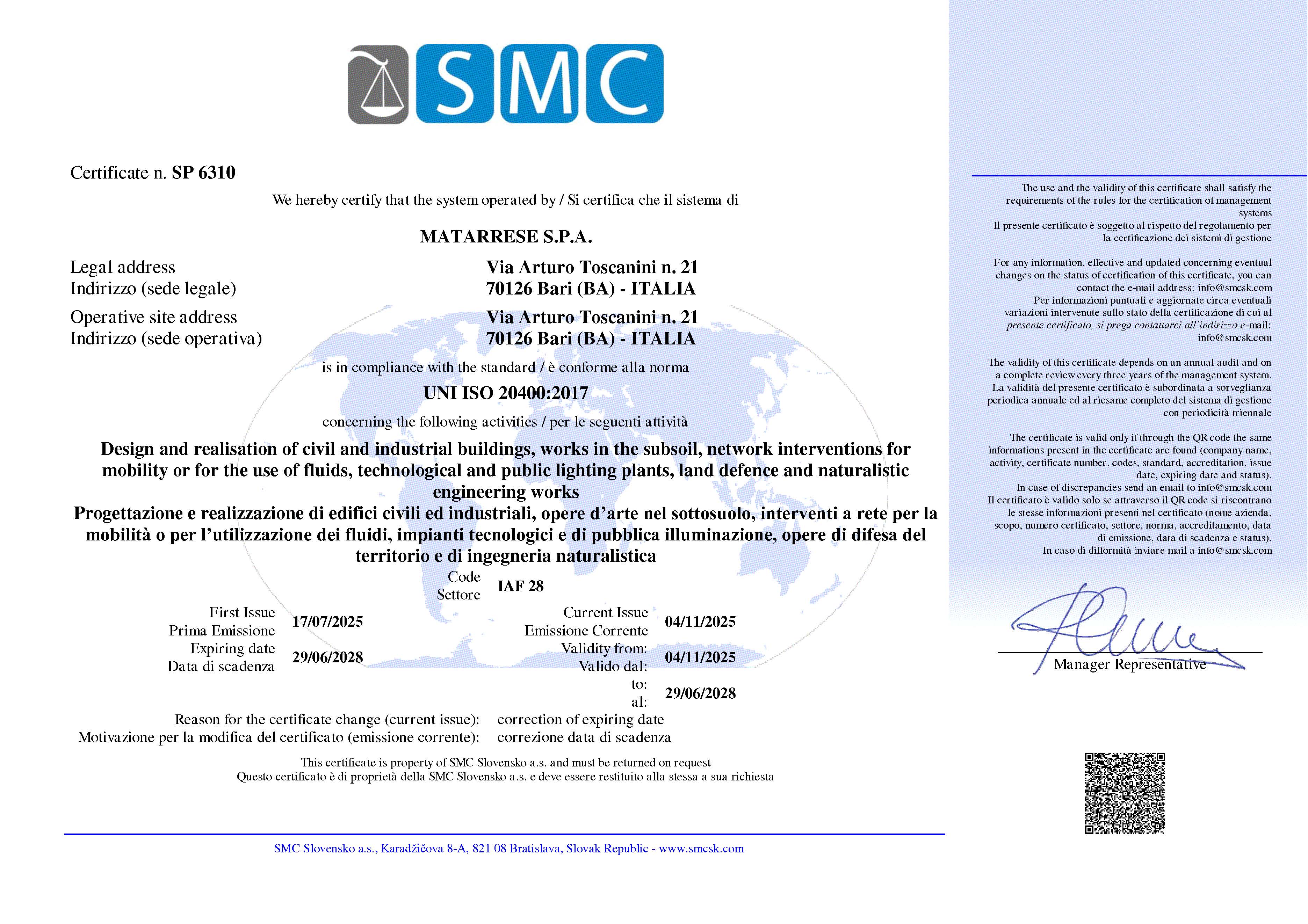Questa Privacy Policy riguarda il presente sito web e non anche ulteriori siti web che non siano di pertinenza di Matarrese S.p.A. eventualmente consultati dall’utente tramite navigazione dei link.